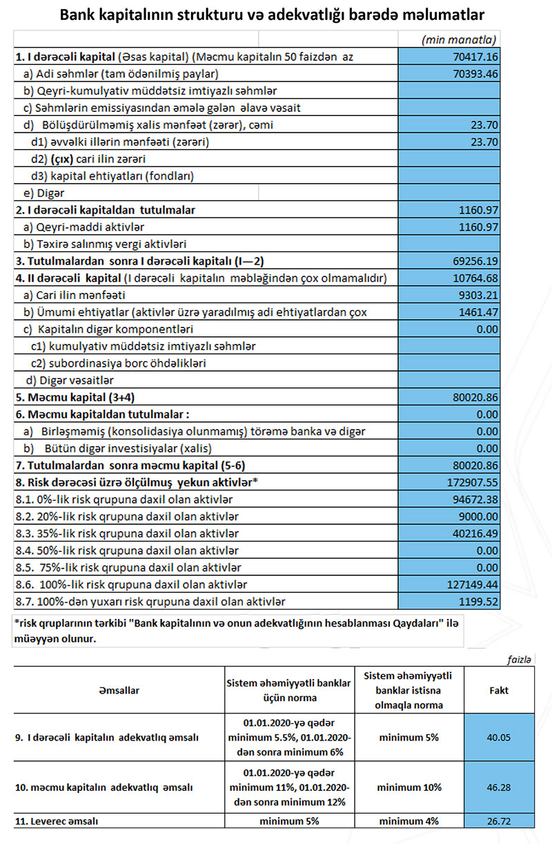 Qeyd edək ki, bankın Məcmu kapitalı 80 milyon manat təşkil edir.