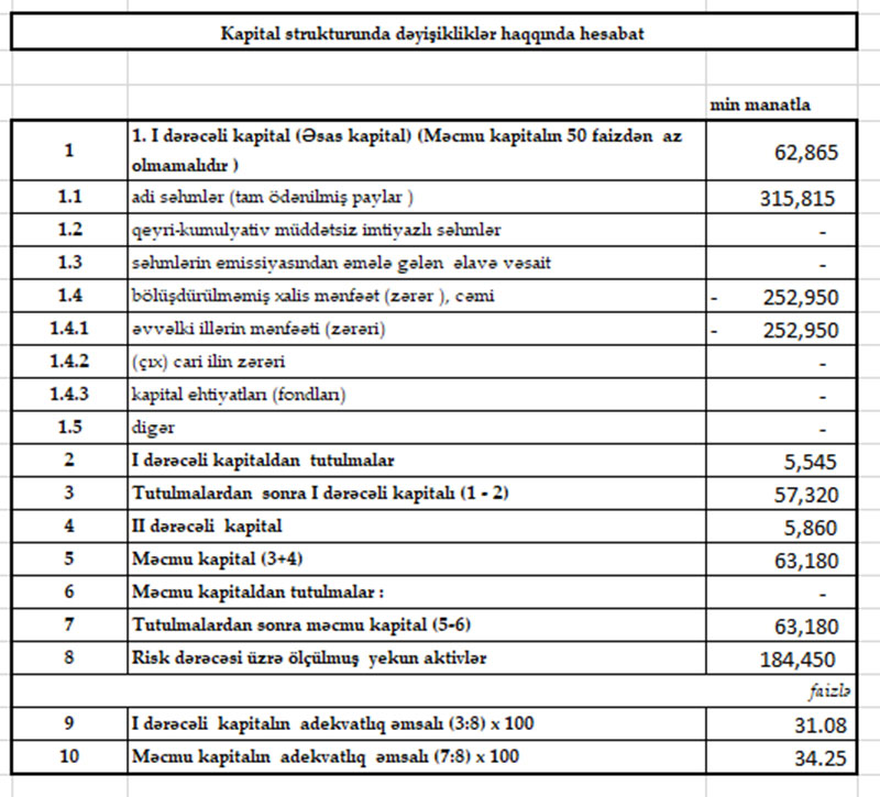 Ötən il Bankın cəmi əməliyyat gəlirləri 10 milyon 741 min manat, cəmi əməliyyat xərcləri isə 6 milyon 302 min manat artıb.