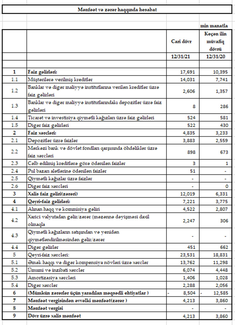 Azərbaycanda fəaliyyət göstərən xarici kapitallı bank 4 milyon manatdan çox mənfəət açıqladı