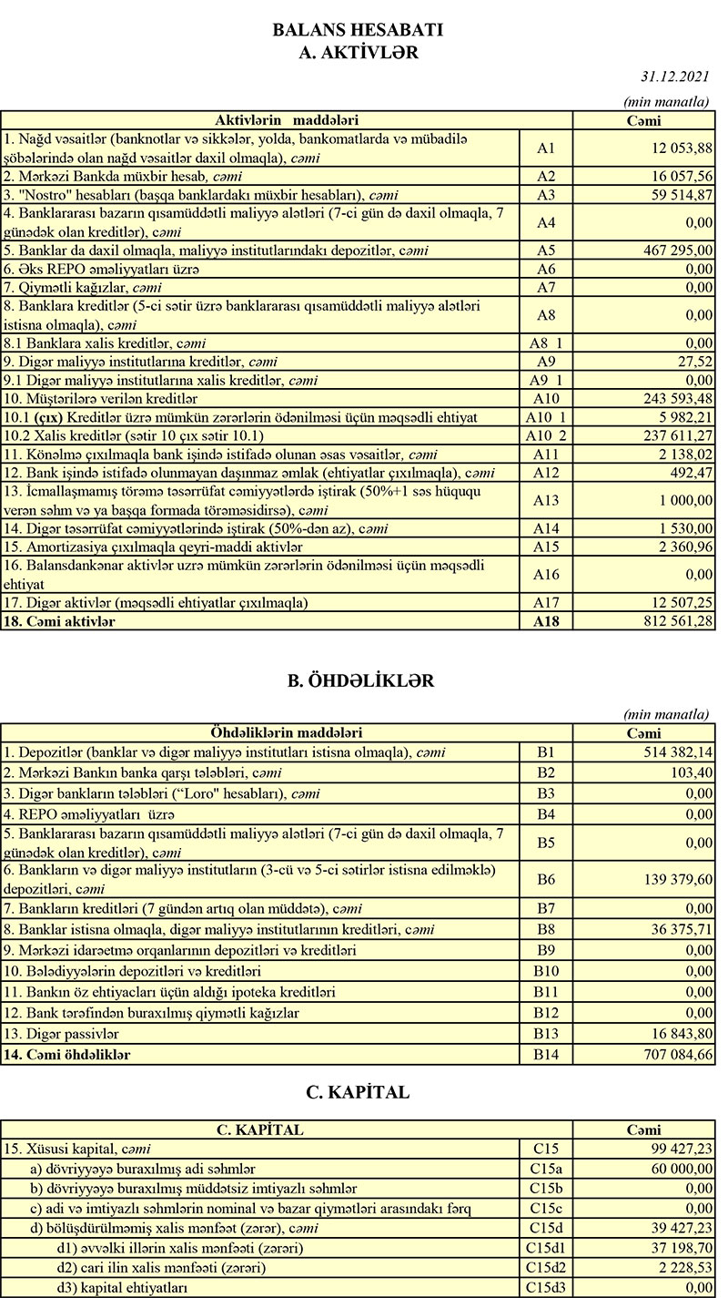 “Azərbaycan Sənaye Bankı” ASC 2021-ci il üzrə maliyyə göstəricilərini açıqlayıb.