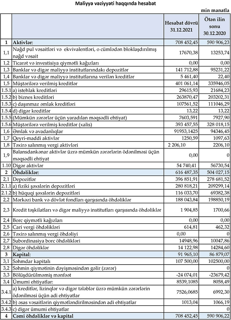 “Muğanbank” ASC 2021-ci il üzrə maliyyə göstəricilərini açıqlayıb.