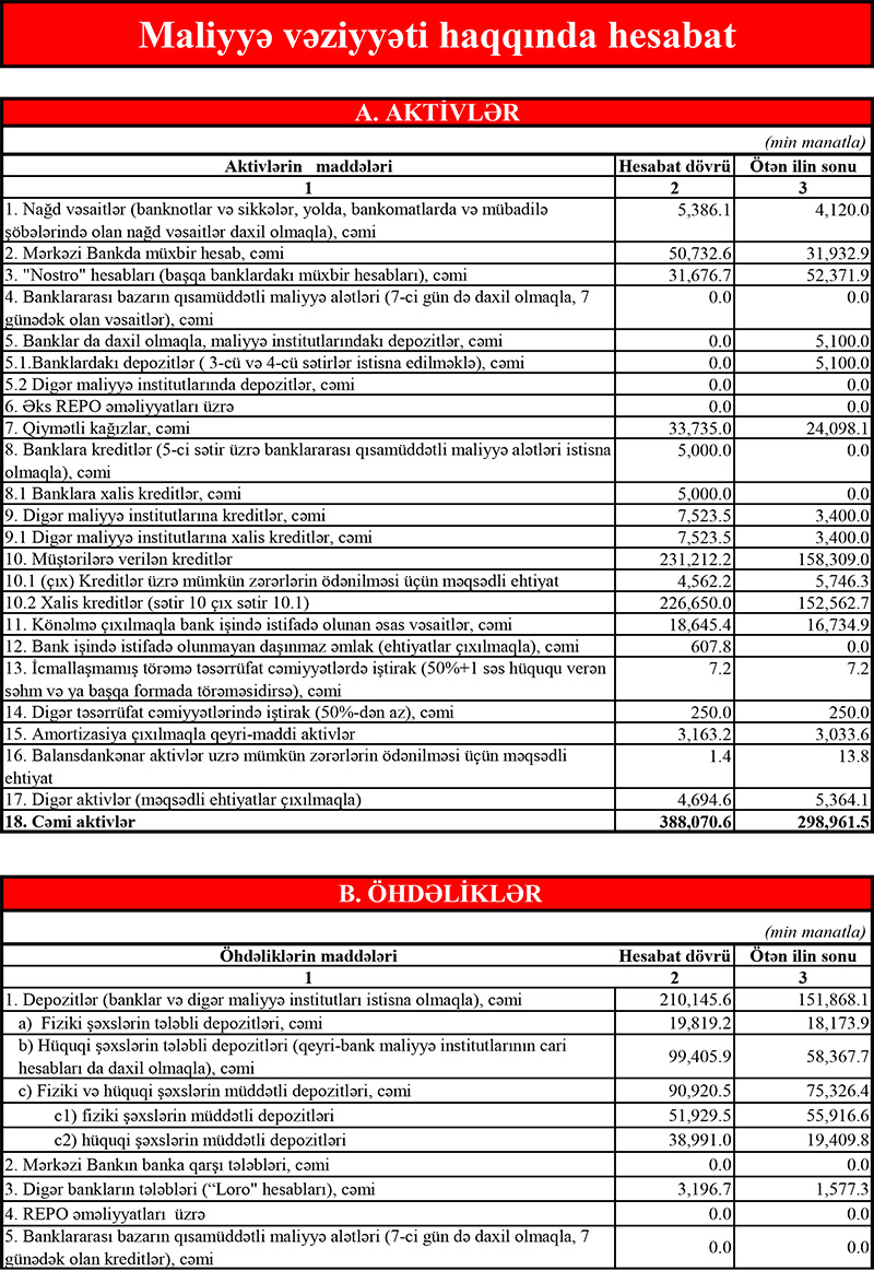 BANK BÖYÜYÜB, MÜŞTƏRİLƏRƏ VERİLƏN KREDİTLƏR KƏSKİN ARTIB