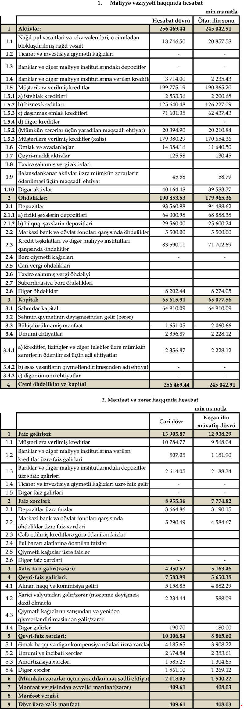 Xatırladaq ki, 2020-ci ildə “Günay Bank”ın əməliyyat mənfəəti 1 milyon 948 min manat təşkil etmiş və mümkün zərərlər üçün yaradılan ehtiyatlara 1 milyon 540 min manat ayrıldığından ili 408 min manat xalis mənfəət ilə başa vurmuşdu.