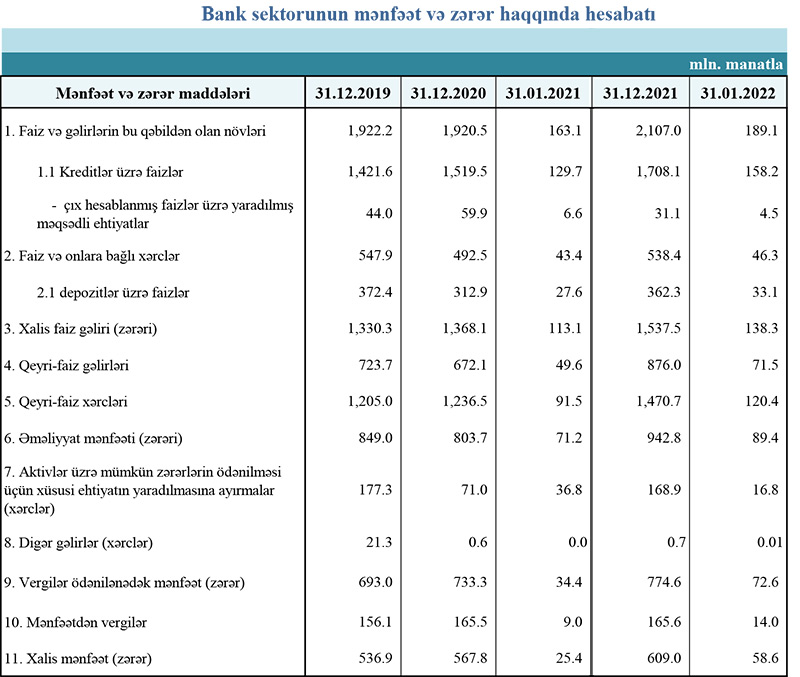 Bankların depozit faizləri üzrə xərcləri 2020-ci ildə 312,9 milyon manat, 2021-ci il əzrində isə 362,3 milyon manat təşkil edib.