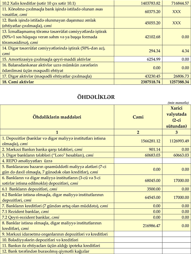 Xatırladaq ki, 2021-ci ilin ilk rübündə Xalq Bankın cəmi əməliyyat gəlirlər 25 milyon 589 min manat, cəmi əməliyyat xərcləri 17 milyon 418 min manat, əməliyyat mənfəəti 8 milyon 171 min manat, aktivlər üzrə mümkün zərərlərin ödənilməsi üçün xüsusi ehtiyatın yaradılmasına ayrılan vəsait 2 milyon 1 min manat, mənfəət vergisi 1 milyon 471 min manat təşkil etmişdi.