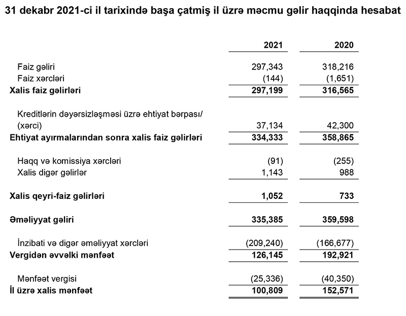 “Azmikroinvest”in faiz gəliri və xalis mənfəəti azalıb