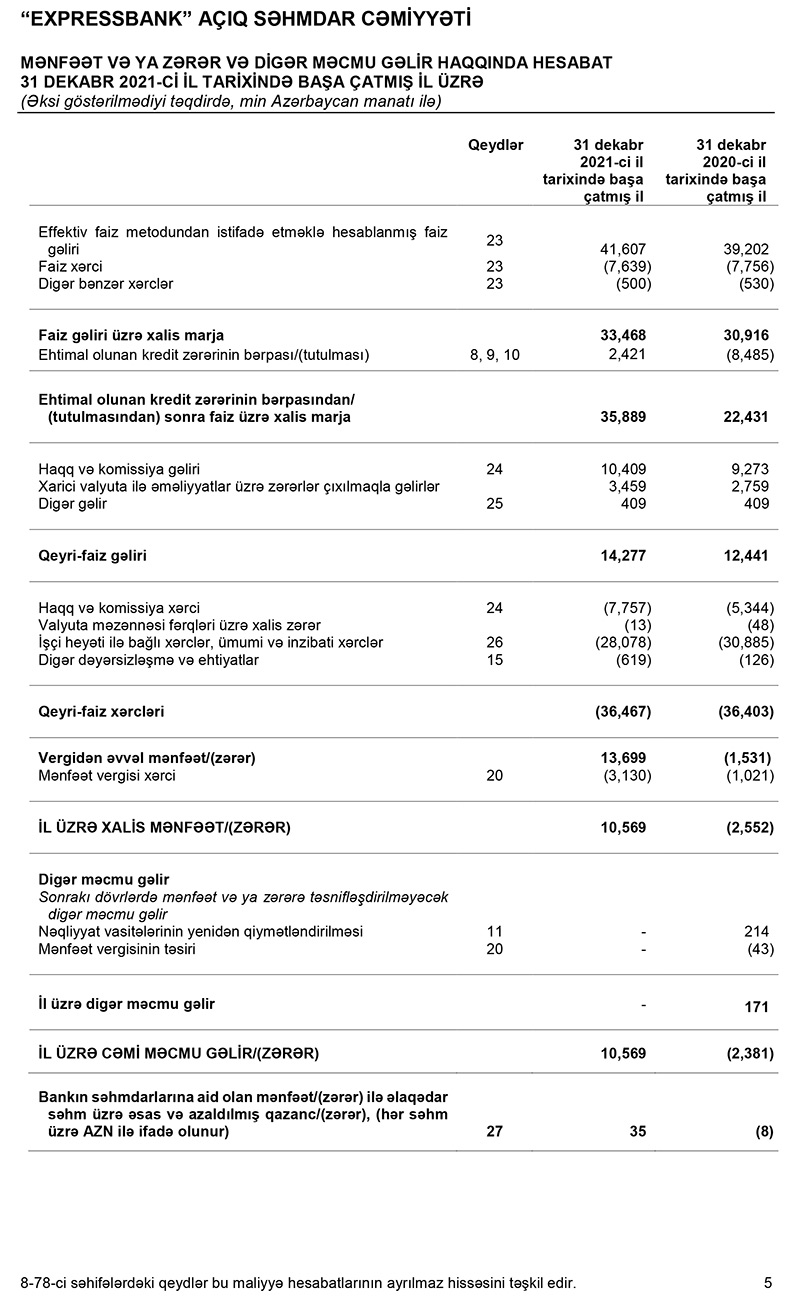 “Expressbank” 2021-ci il üzrə audit hesabatını açıqladı