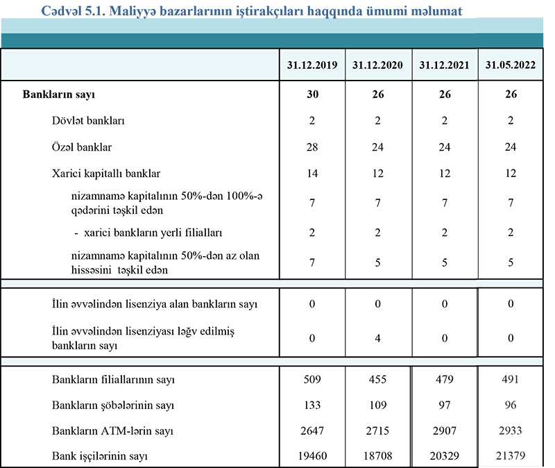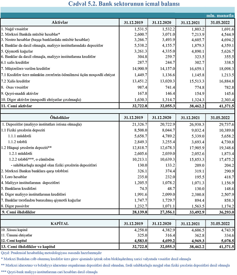 31 may 2022-ci il tarixinə olan bank sektorunun əsas göstəriciləri açıqlanıb.
