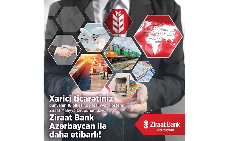 “Ziraat Bank Azərbaycan”dan xarici ticarət iştirakçılarına hərtərəfli dəstək“Ziraat Bank Azərbaycan” xarici ticarət ilə məşğul olan müştərilərinin tələbatlarına müvafiq təklif etdiyi xidmətlərinin əhatə dairəsini genişləndirməyə davam edir.