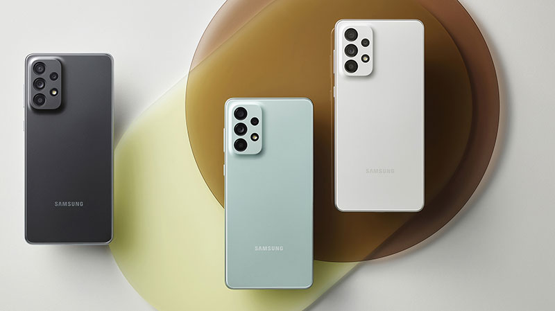 • Galaxy A73 - 6,7”. Super AMOLED Plus, 120Hz, 1080 x 2400 piksel, Corning Gorilla Glass 5, ekranın altında yerləşdirilmiş barmaq izi skaneri