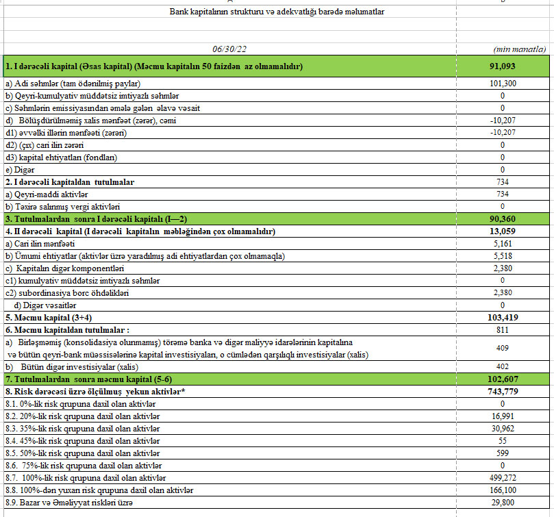 30 İyun 2022-ci il tarixində "Rabitəbank" ASC-nin məcmu kapitalı 102 milyon 607 min manat təşkil edib.