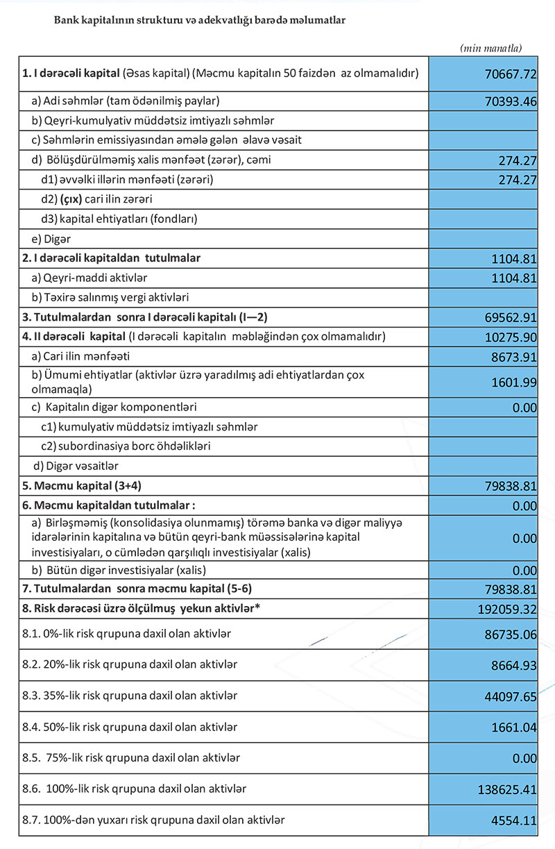 Qeyd edək ki, bankın məcmu kapitalı 80 milyon manat təşkil edir.