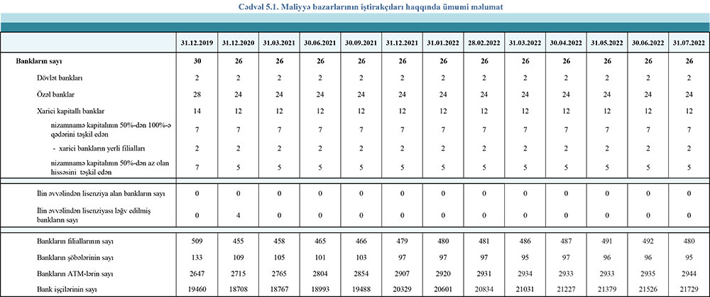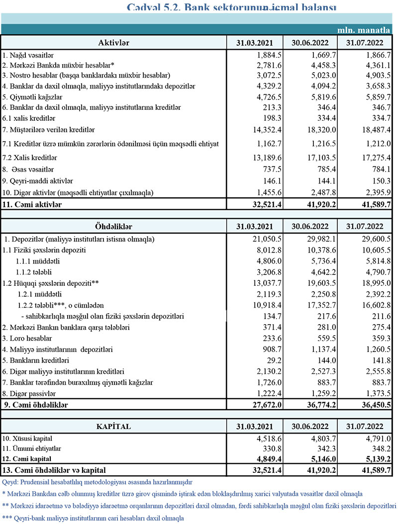 31 iyul 2022-ci il tarixinə olan bank sektorunun əsas göstəriciləri açıqlanıb.
