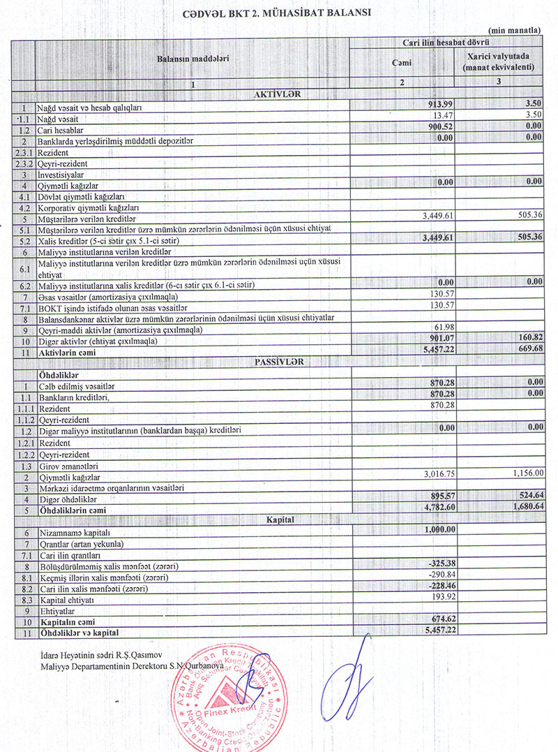 Müqayisə üçün qeyd edək ki, 2021-ci ilin ilk 6 ayında "Finex Kredit BOKT"un cəmi gəlirləri 723 min 570 manat, cəmi xərcləri isə 827 min 70 manat təşkil etmişdi.