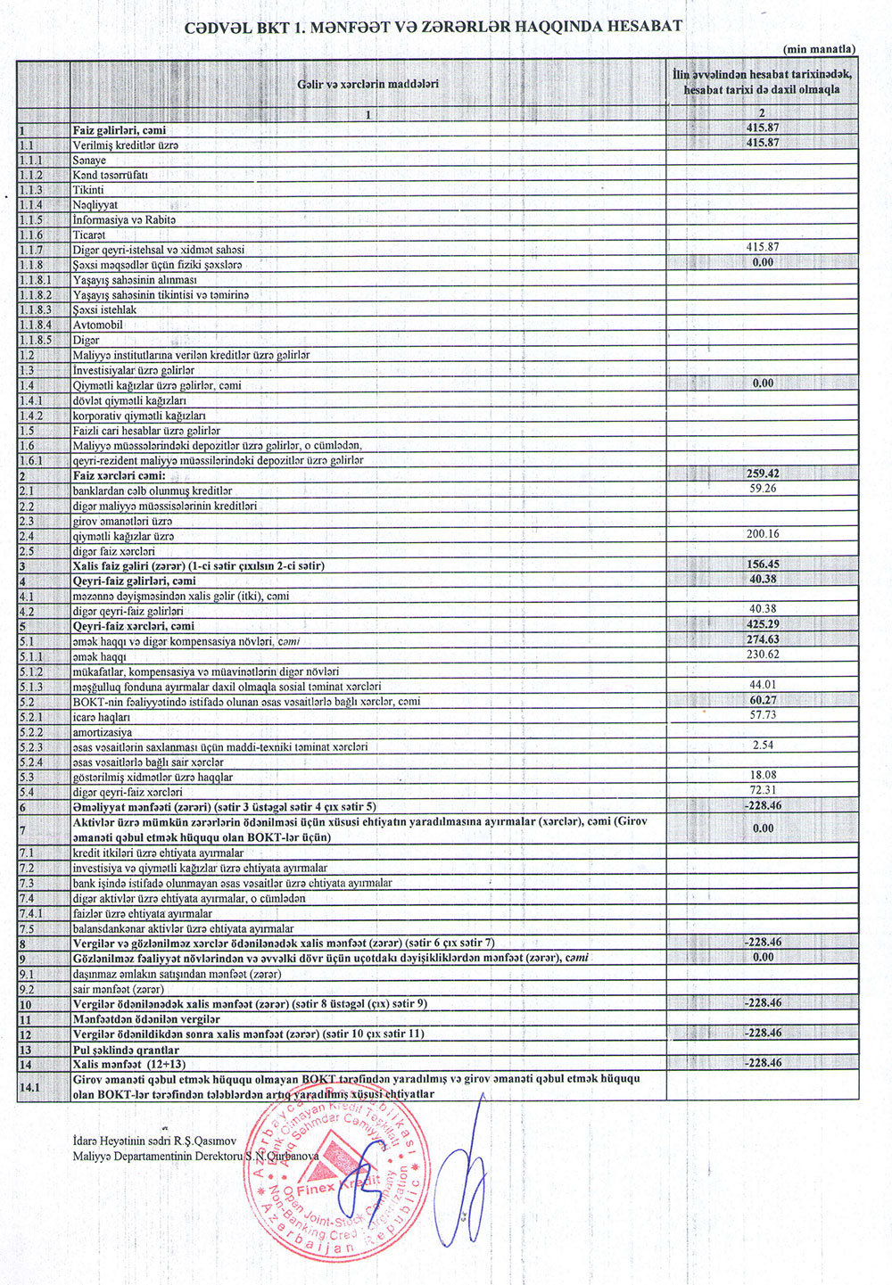 "Finex Kredit BOKT" ASC 2022-ci ilin 1-ci yarısını 228 min manat xalis zərər ilə başa vurub. Kredit təşkilatı ötən ilin eyni dövrünü 103 min 500 manat, tam 2021-ci ili isə 311 min manat xalis zərər ilə bağlamışdı. Beləliklə, 2021-ci ilin 1-ci yarısı ilə müqayisədə 2022-ci ilin 1-ci yarısında "Finex Kredit"in xalis zərəri 2,2 dəfə artıb.