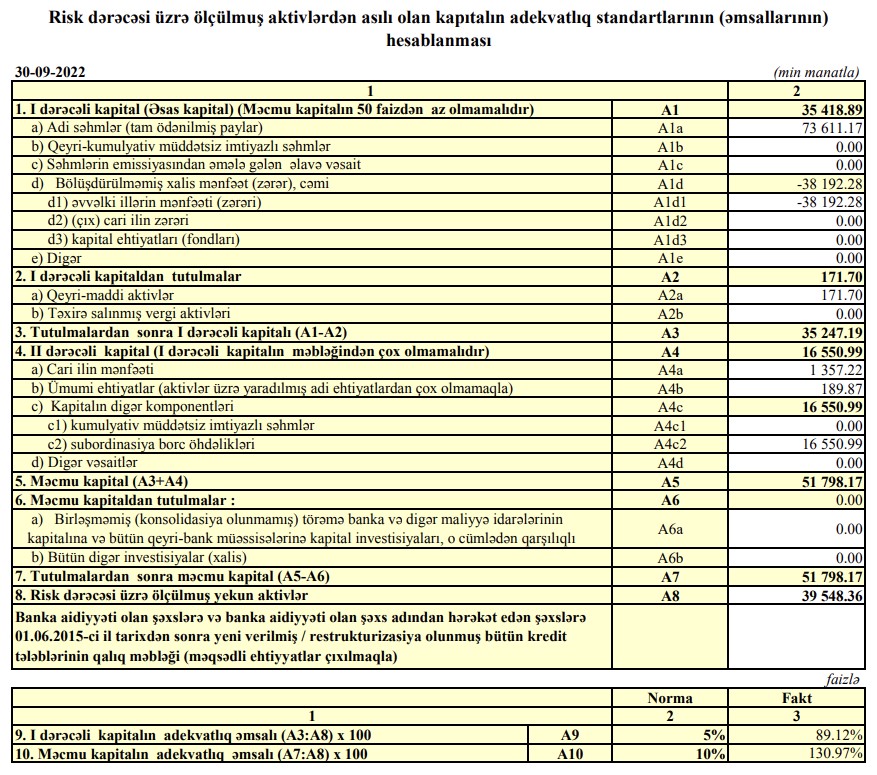 Bank 2022-nin 9 ayı üzrə maliyyə göstəricilərini açıqladı