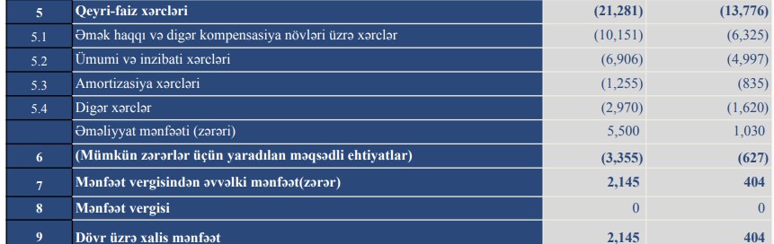 Xatırladaq ki, 2021-ci ilin 9 ayında "Turanbank"ın cəmi əməliyyat gəlirləri 34 milyon 522 min manat, cəmi əməliyyat xərcləri 33 milyon 491 min manat, gəlirlər xərcləri üstələdiyindən əməliyyat mənfəəti 1 milyon 30 min manat təşkil etmişdi. Bank əməliyyat mənfəətindən mümkün zərərlər üçün yaradılan məqsədli ehtiyatlara 627 min manat ayrımışdı.