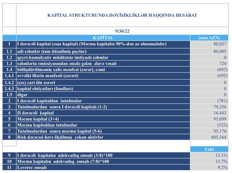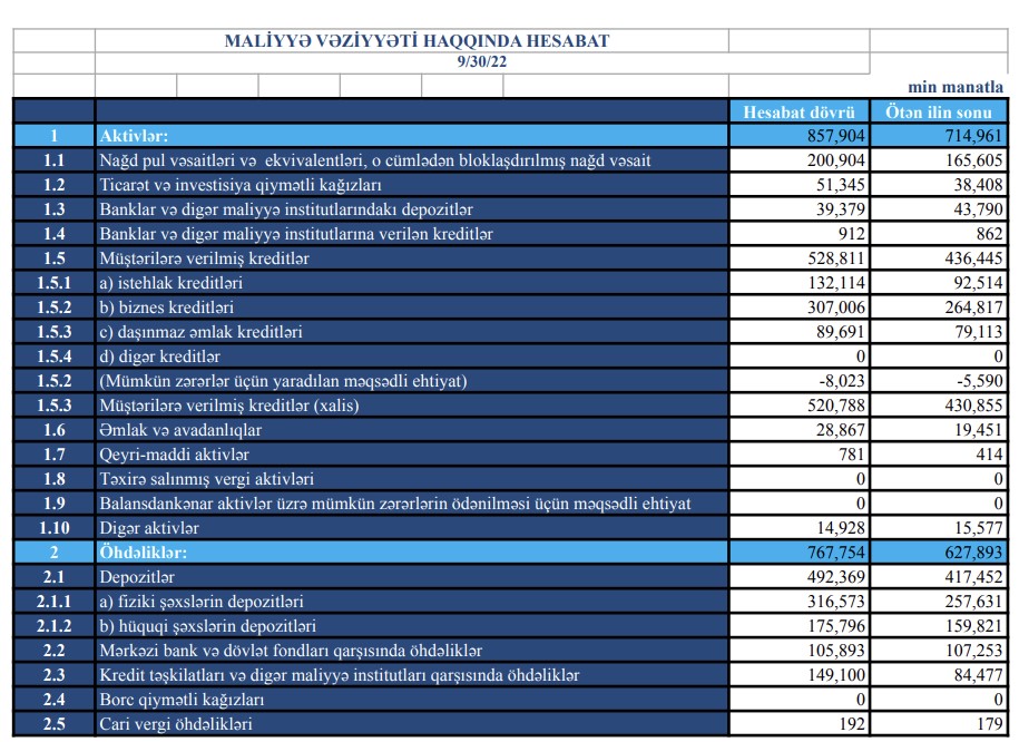 Eyni zamanda, Bank 2 milyon 445 min manatlıq faiz borcları üzrə məqsədli ehtiyat yaradıb.