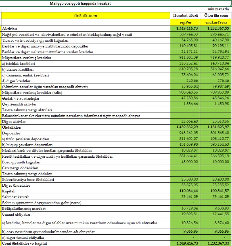 Azərbaycanda 5-ci böyük bankın maliyyə vəziyyəti məlum oldu