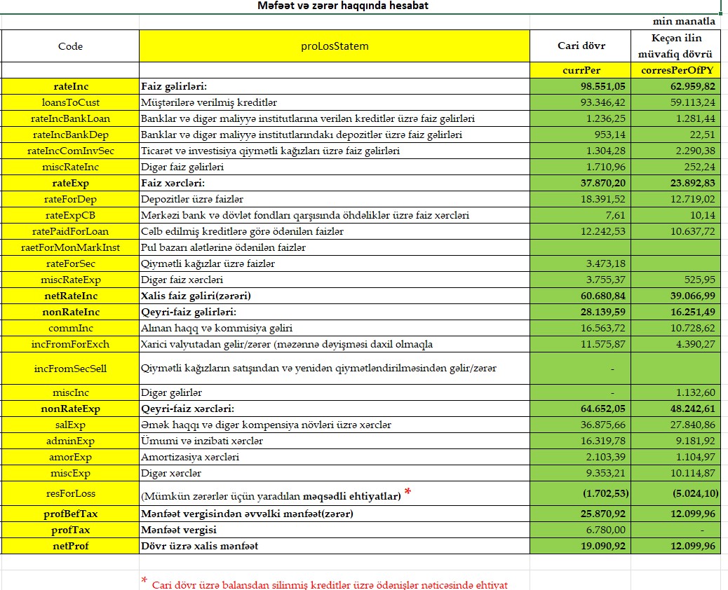 Eyni zamanda,cari ilin 9 ayında mümkün zərərlər üçün yaradılan ehtiyatdan 1 milyon 702 min manat qayıdıb və mənfəətə əlavə olunub. Ötən ilin eyni dövründə mümkün zərərlər üçün yaradılan ehtiyatdan 5 milyon 24 min manat qayıtmışdı.