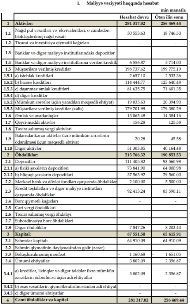 "Günay Bank" ASC 2022-ci il üzrə maliyyə göstəricilərini açıqlayıb.