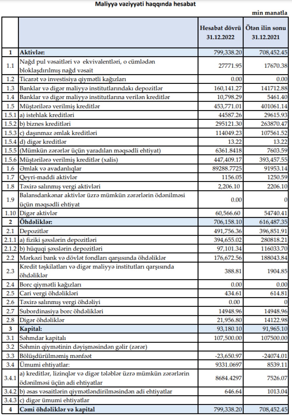 "Muğanbank" ASC 2022-ci il üzrə maliyyə göstəricilərini açıqlayıb.