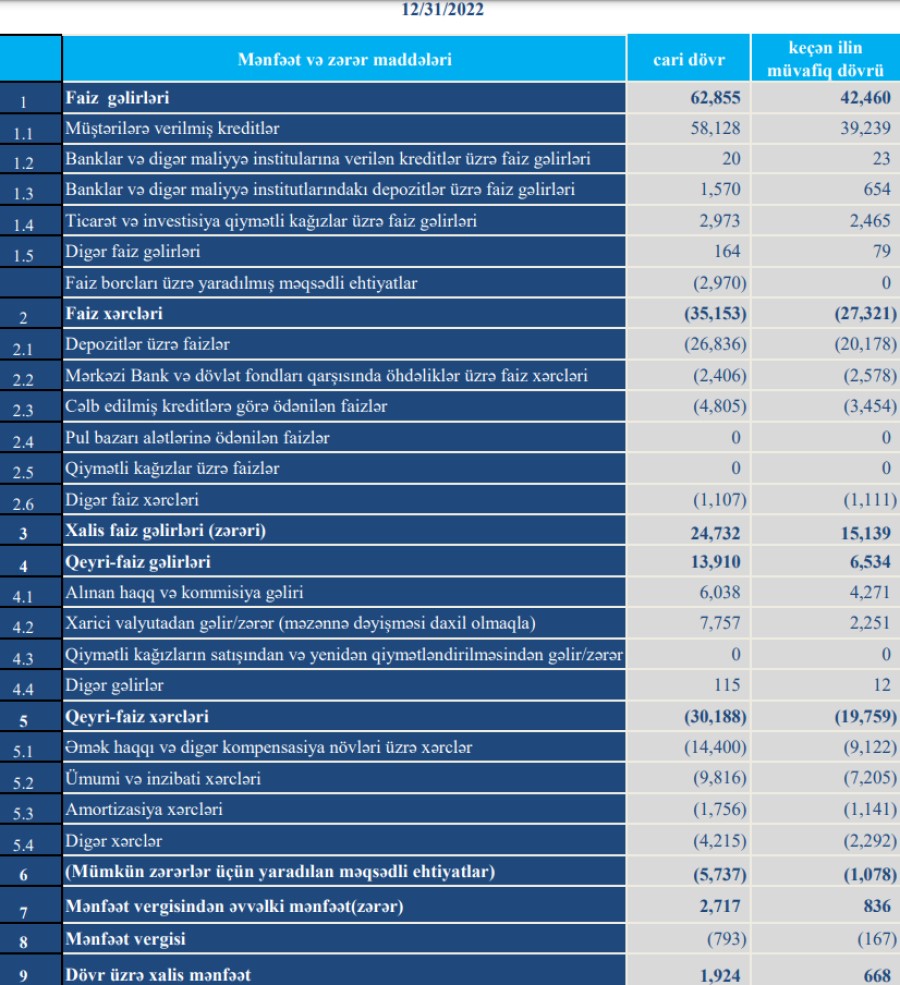 "Turanbank" ASC 2022-ci il üzrə maliyyə göstəricilərini açıqlayıb.