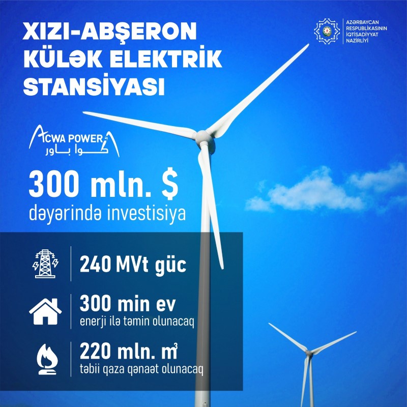 "ACWA Power" şirkəti külək elektrik stansiyasının qurulmasına 300 milyon dollar investisiya yatıracaq.