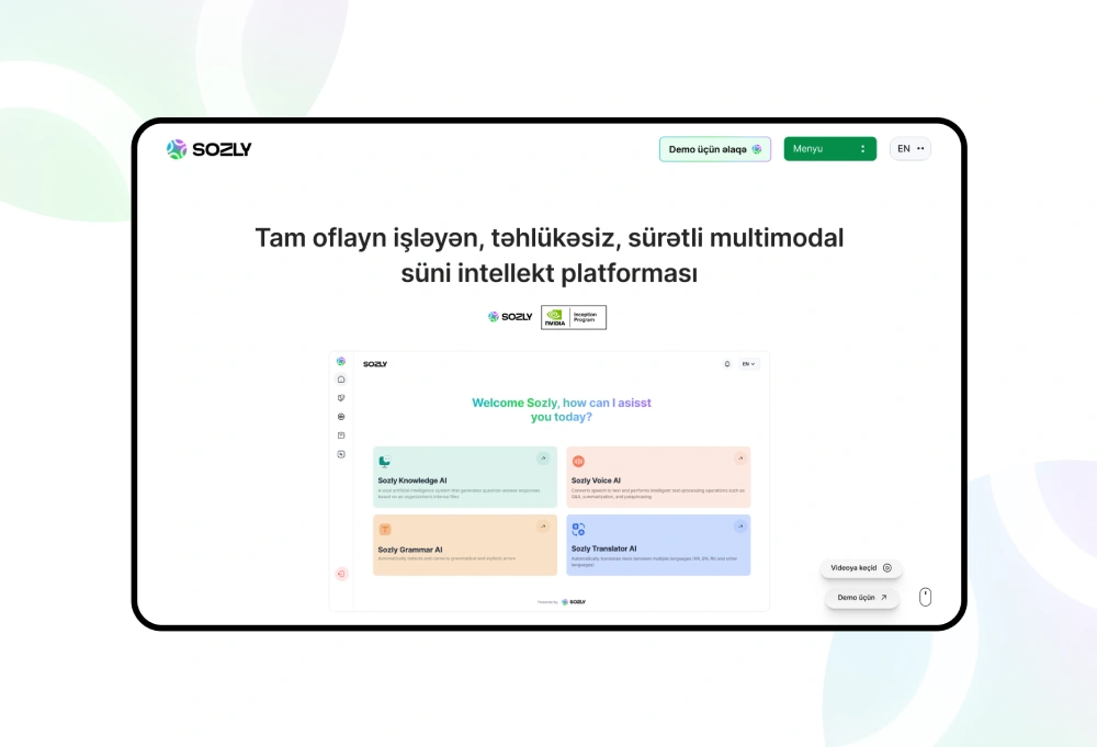 “Müasir müəssisələr üçün məlumat təhlükəsizliyi prioritetdir. Sozly tam oflayn və lokal işləmə prinsipi ilə korporativ AI həllərinə yeni yanaşma təqdim edir. NVIDIA Inception üzvlüyü isə inkişaf strategiyamızın beynəlxalq texnologiya standartlarına uyğun olduğunu təsdiqləyir” - Sozly.ai məhsulunun yaradıcısı "BIRAİNY" MMC-nin təsisçisi və direktoru Fuad Tağıyev bildirib.