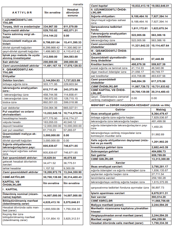 “AZSIĞORTA” ASC-nin 31 dekabr 2025-ci il tarixinə mühasibat balansı