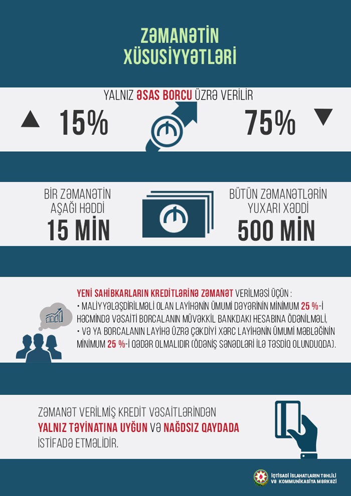 Fərmanı daha aydın şəkildə anlamaq və təqdim etmək üçün İqtisadi İslahatların Təhlili və Kommunikasiya Mərkəzi kreditlərə zəmanət və subsidiyalar verilməsi qaydaları ilə bağlı bir neçə infoqrafika hazırlayib.