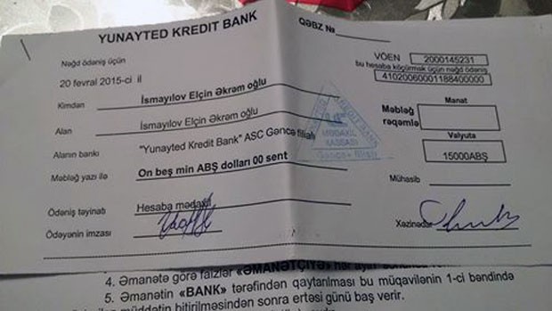 Lisenziyası ləğv edilmiş “Yunayted Kredit Bank”a əmanət yatırdığını bildirən Elçin İsmayılov “Marja”ya müraciətində bildirib ki, özü daxil bir neçə nəfər “Yunayted Kredit Bank”ın Gəncə filialına əmanət qoyublar. Lakin bank bağlanandan sonra pullarını ala bilməyiblər: