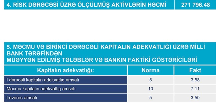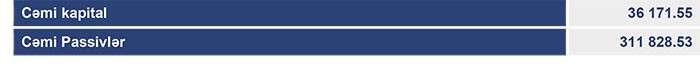 Bank 2017-ci ilin sonunda 399 milyon 860 min manat cəmi aktivlərə, 363 milyon 272 min manat cəmi öhdəliklərə və 36 milyon 587 min manat cəmi balans kapitalına malik idi.