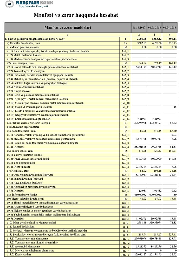 “Naxçıvanbank” ASC 2018-ci ilin 1-ci rübünü 853 min manat xalis mənfəət ilə başa vurub. Bank 2016-cı ili 4 milyon 6.5 min manat xalis mənfəətlə bağlamışdı.