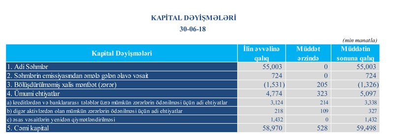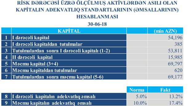 30 İyun 2018-ci il tarixində "TuranBank" 69 milyon 797 min manat məcmu kapiatala malik olub, bu da minimal tələbdən yüksəkdir.