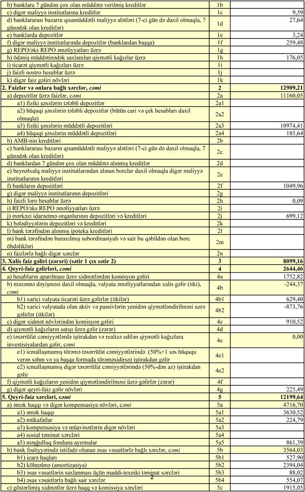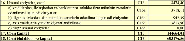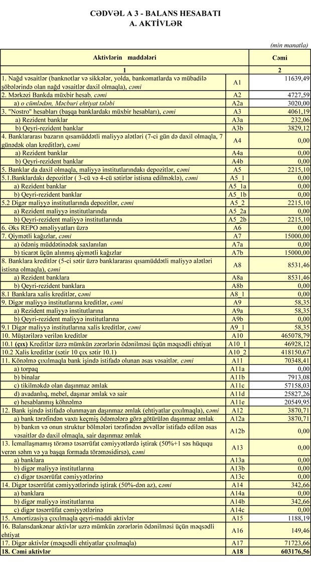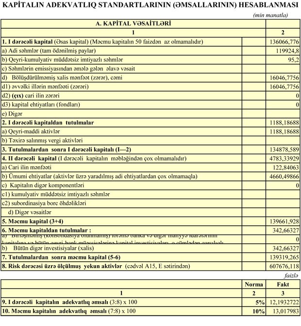 Bank 30 İyun 2017-ci il tarixində  609 milyon 875 min manat cəmi aktivlərə, 458 milyon 143 min manat cəmi öhdəliklərə və 151 milyon 731 min manat cəmi balans kapitalına malik idi.