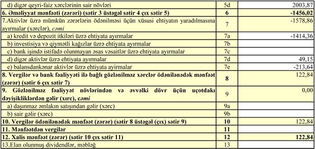 Cari ilin birinci yarısında cəmi xərclər cəmi gəlirləri üstələdiyindən “AtaBank”ın 1 milyon 456 min manat əməliyyat zərəri yaranıb. Lakin ötən illər ehtimal olunan kredit və depozit itkiləri üçün yaradılmış ehtiyatların 1 milyon 578 min manatı azad olduğundan və mənfəətə əlavə edildiyindən, həm əməliyyat zərəri bağlanıb, həm də bank cari ilin birinci yarısını təxminən 123 min manat xalis mənfəətlə başa vurub.