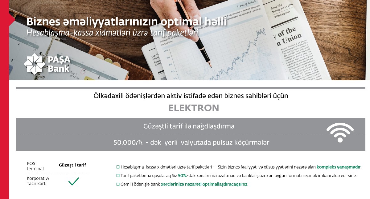 PAŞA Bankdan KOS-lar üçün Elektron tarif paketi!