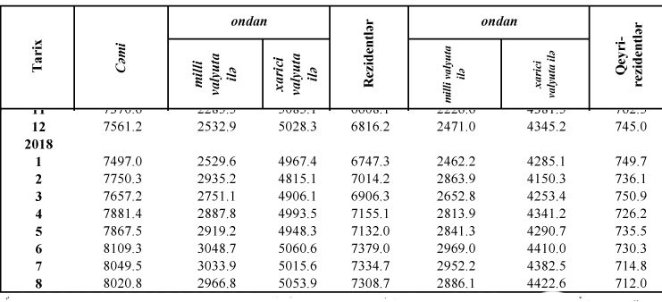 Avqustda milli valyutada əmanətlər isə 3 milyard 33.9 milyon manatdan 2 milyard 966.8 milyon manata geriləyib (67,1 milyon manat azlma).