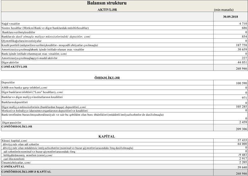 Bankın maliyyə göstəriciləri ilə daha ətraflı buradan tanış ola bilərsiniz.