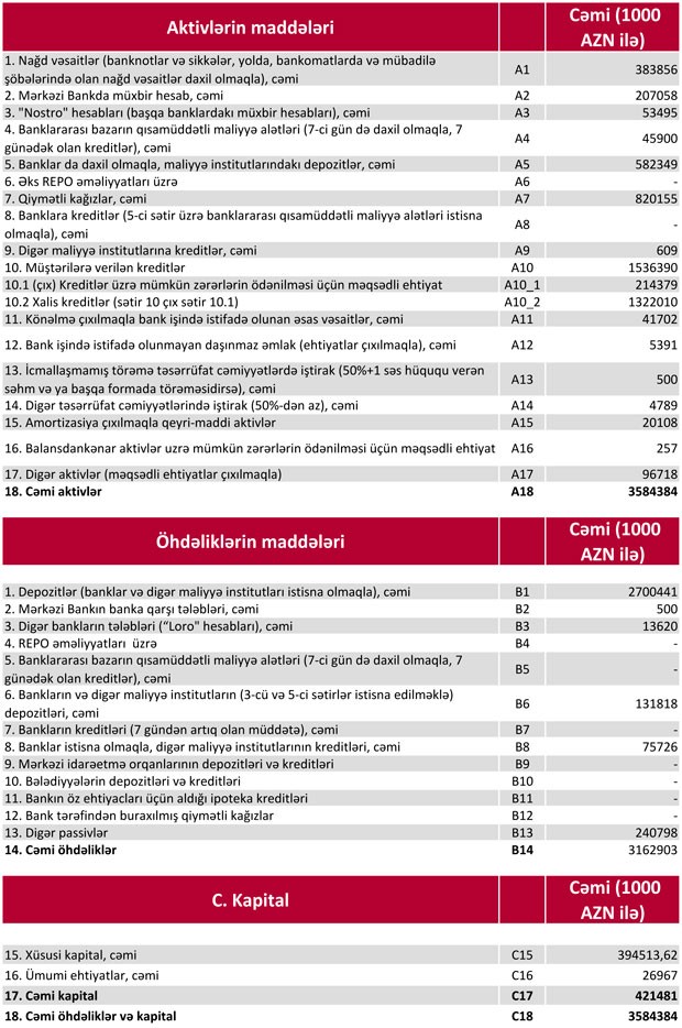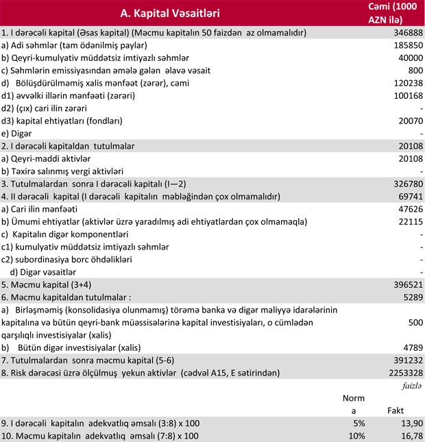 Müqayisə üçün qeyd edək ki, 2018-ci ilin yanvar-mart dövründə “Kapital Bank”ın cəmi gəlirləri 106 milyon 334 min manat, o cümlədən faiz gəlirləri 73 milyon 466 min manat, qeyri-faiz gəlirləri 32 milyon 868 min manat təşkil etmişdi.