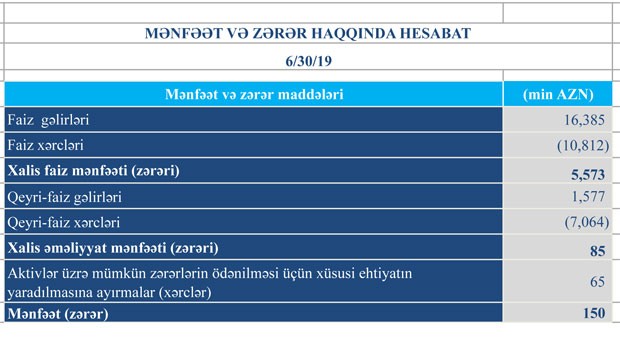 Bankın qeyri-faiz gəlirləri isə 1 milyon 716 min manatdan 1 milyon 577 min manata düşüb (139 min manat və ya 8,1% azalıb).