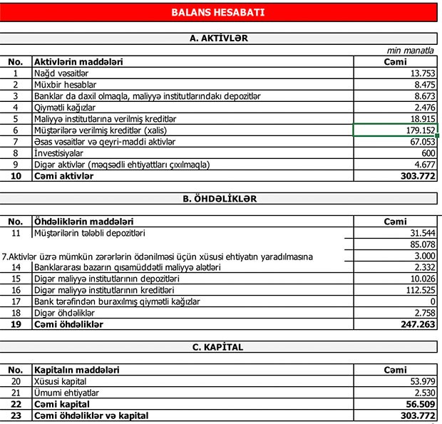 Müqayisə üçün qeyd edək ki, 2018-ci ilin birinci yarısında aktivlər üzrə mümkün zərərlərin ödənilməsi üçün yaradılmış ehtiyatın 693 min manatı azad olduğundan bankın mənfəəti 355 min manatdan 1 milyon 48 min manata yüksəlmişdi.