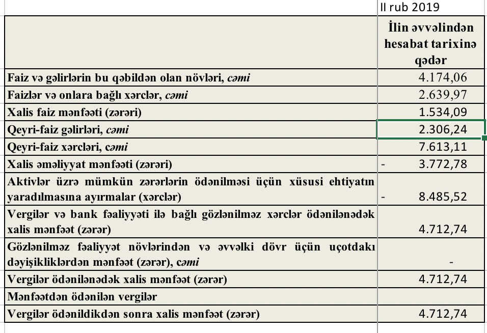 Müqayisə üçün qeyd edək ki, 2018-ci ilin 1-ci yarısında da “VTB Bank Azərbaycan”ın gəlirləri xərclərini ödəməmişdi. Xərclər gəlirləri kəskin üstələdiyindən bankın 16 milyon 82 min manat əməliyyat zərəri yaranmışdı. Üstəlik Bank, ehtiyatlara 234 milyon 289 min manat ayırmışdı. Nəticədə Bankın yarımillik zərəri 250 milyon 371 min manata çatmışdı.