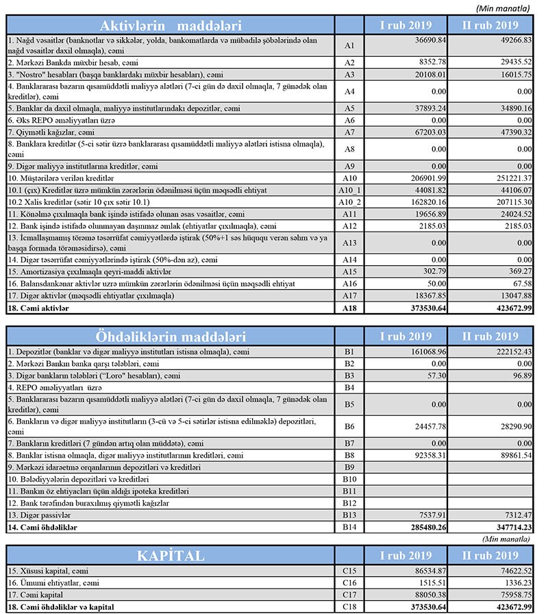 “Marja” Bankın rüblük hesabatlarına istinadən xəbər verir ki, 2019-cu ilin yanvar-iyun dövründə “AFB Bank”ın cəmi faiz və qeyri-faiz gəlirləri 19 milyon 93 min manat (14 milyon 359 min manatı faiz, 4 milyon 734 min manatı qeyri-faiz gəlirləri), cəmi xərcləri 15 milyon 348 min manat təşkil edib. Gəlirlər xərcləri üstələdiyindən Bankın 3 milyon 744 min manat əməliyyat mənfəəti olub. “AFB Bank” əməliyyat mənfəətinin 2 milyon 67 min manatını aktivlәr üzrә mümkün zәrәrlәrin ödәnilmәsi üçün xüsusi ehtiyatın yaradılmasına ayırdığından cari ilin 1-ci yarısını 1 milyon 677 min manat xalis mənfəət ilə bağlayıb.