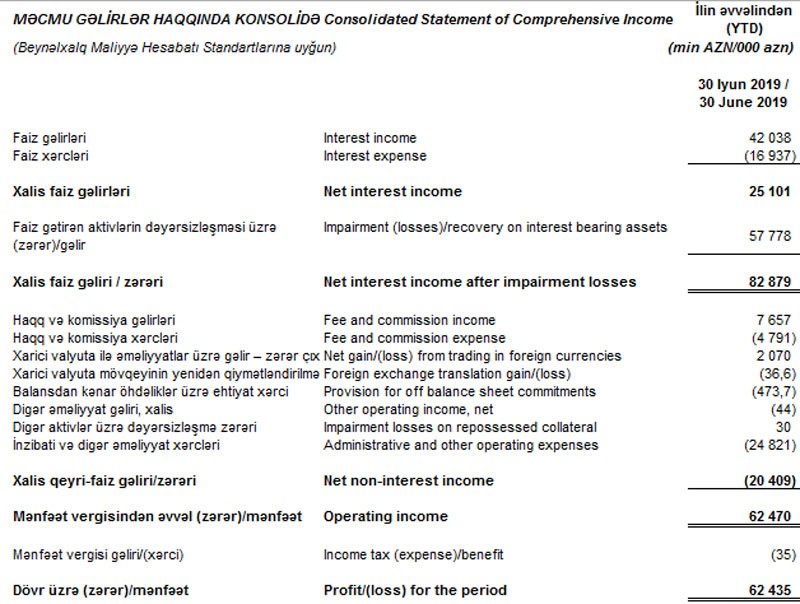 Diqqəti cəlb edən "Unibank"ın faiz gəlirlərinin artmasıdır. Ötən ilin 1-ci yarısında 21 milyon 372 min manat təşkil etmiş faiz gəlirləri 2019-cu ilin 1-ci yarısında 42 milyon 38 min manata yüksəlib.