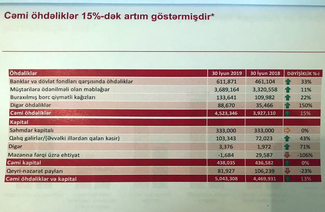 Bəhruz Nağıyev bildirdi ki, 2018-ci ilin 1-ci yarısı ilə müqayisədə 2019-cu ilin 1-ci yarısında “PAŞA Bank”ın cəmi öhdəlikləri 15% artaraq 30 İyun 2019-cu il tarixində 4 milyard 523 milyon manat təşkil edib. Öhdəliklərin artmasının əsas səbəblərindən biri müştəri hesablarının artmasıdır. Müştərilərə ödənilməli olan məbləğlər 3 milyard 689 milyon manatı keçib.