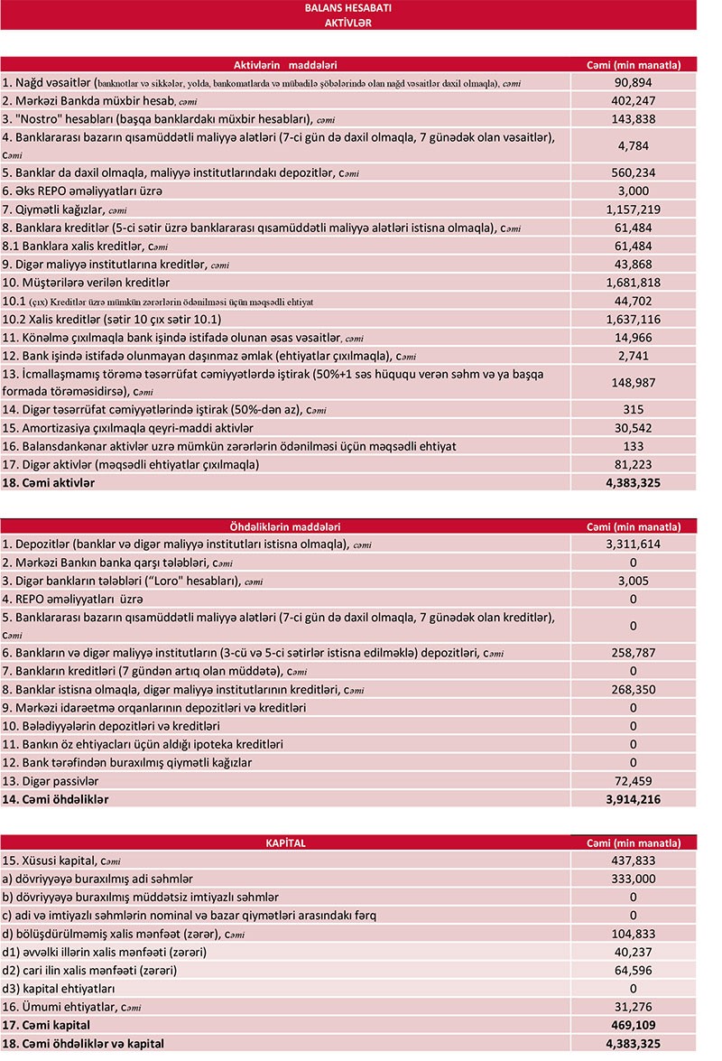 Azərbaycanın ən böyük özəl bankı 9 aylıq maliyyə göstəricilərini açıqladı