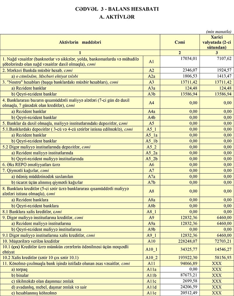 2019-cu ilin sonunda Bank 496 milyon 193 min manat cəmi aktivlərə malik idi və aktivlərin 245 milyon 695 min manatını müştərilərə verilən kreditlər təşkil etmişdi.
