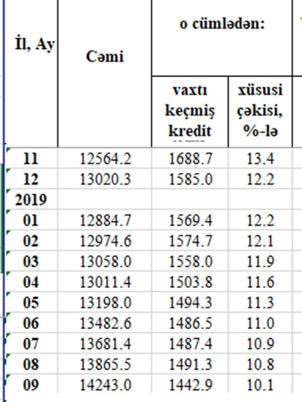 Problemli kreditlər sentyabrda azalıb